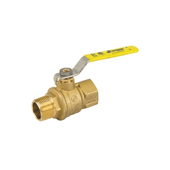 2-Piece Full-Port Ball Valve, Series/Model: Model T-100FMN, Nominal Size: 3/8 IN, Connection Type: MNPT X FNPT, Pressure Rating: 600 PSI (WOG), 150 PSI (SWP), Brass Body Material, Handle Material: Geomet® Plated Steel, Stem Material: Brass, Trim Material: Brass Ball, Packing Material: TFM 1600 Hostaflon®, Brass Gland, Seat Material: TFM 1600 Hostaflon®, Seal Material: Teflon, Material Specification: Body And Ball: CW617N, Stem And Gland: CW614N, Finish/Color: Chrome Plated, Industry Standards: C/US CSA Certified, MSS-SP-110, 2.26 IN Width, Lead Free: No, Other Physical Dimension: 1.41 IN Inlet Center To Top Of Handle, 2.95 IN Handle Length, Additional Specifications: Flow Co-Efficient (Cv): 7.77