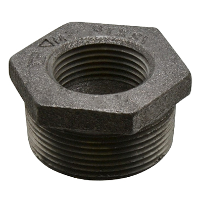 Hex Bushing, Class 125 Pressure Class, Nominal Size: 6 X 2 IN, Connection Type: MNPT X FNPT, STD Schedule, Material: Cast Iron, Material Standard: ASTM A126 Class A Minimum, Finish/Color: Black, Industry Standards: ASME B16.14, ASME B16.4, ANSI/ASME B1.20.1, UL And ULC Listed, FM Approved, NSF 61 And NSF 61 Annex G, Other Physical Dimension: 3.28 IN Head Width, 3/4 IN Head Height, 3/4 IN Internal X 1.4 IN External Thread Length