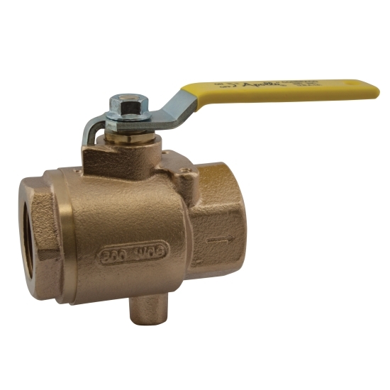 Apollo Valves 7K-100 Bronze Latch-Lock Lever Handle 2-Piece Full-Port Ball Valve With Drain, 3/4 IN, FNPT