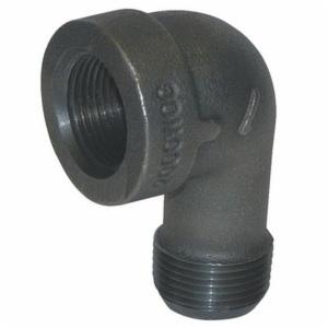 90 DEG Street Elbow, Class 300 Pressure Class, Nominal Size: 1/4 IN, Connection Type: FNPT X MNPT, XH Schedule, Material: Malleable Iron, Material Standard: ASTM A197, Finish/Color: Black, Outside Diameter: 0.93 IN, Maximum Pressure: 2000 PSI, Temperature Rating: -20 To 150 DEG F, Industry Standards: ASME B16.3, ANSI/ASME B1.20.1, UL And ULC Listed, FM Approved, NSF 61 And NSF 61 Annex G, Other Physical Dimension: 0.94 IN Center To End, 1.44 IN Center To Male End, 0.26 IN Port Diameter Male End, 0.43 IN Internal X 0.4 IN External Thread Length, 1.03 IN Male End X 0.53 IN Female End Take Out