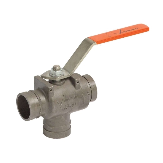 Vic-Ball® Diverter Ball Valve, Series/Model: Series 723, Nominal Size: 2 IN, Connection Type: Grooved End, Ports/Ways: 3-Port, Pressure Rating: 600 PSI, Ductile Iron Body Material, Handle Material: Galvanized Stamped Carbon Steel With Plastic Grip, Stem Material: 316 Stainless Steel, Trim Material: 316 Stainless Steel Ball, Seal Material: TFE, Material Standard: Body: ASTM A395, Finish/Color: Black Enamel Coated, Industry Standards: NACE MR-01-75 Compliant, 6-1/2 IN Width, 7.38 IN Height, Lead Free: No, Other Physical Dimension: 2-3/8 IN Actual Outside Diameter, 9.13 IN Handle Length