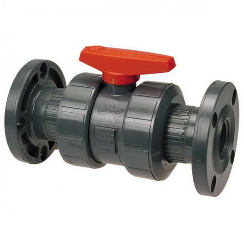 The true union ball valve is engineered with a self-adjusting seat and upstream and downstream blocking capability to stop flow when an alternate union is removed for servicing the piping system. The valves injection molded PVC construction with EPDM O-ring is ideal for use in chemical processing, industrial plating, chilled water distribution, chemical drainage and irrigation systems. The original true union design allows the valve and operational components to be conveniently lifted from the piping system for repair or replacement. Tru-Bloc advances the True Union concept with the self-adjusting energizer O-ring. The valve can be easily joined with the flanged end connections. PVC Schedule 80 exhibits excellent corrosion resistance properties and has the highest long-term hydrostatic strength of any other major thermoplastic material used for piping systems. PVC valves are lightweight, easy to install, maintenance-free and will not rust, scale, pit or corrode. Choose these valves for the most reliable, versatile and economical valve option in commercial and industrial applications. Backed by a 1-year limited warranty and are unsurpassed in quality, performance and longevity.