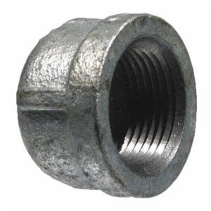 Cap, Class 150 Pressure Class, Nominal Size: 1-1/2 IN, Connection Type: FNPT, STD Schedule, Material: Malleable Iron, Material Standard: ASTM A197, Coating: ASTM A153, Finish/Color: Galvanized, Outside Diameter: 2.43 IN, Length: 1.33 IN, Maximum Pressure: 300 PSI, Temperature Rating: -20 To 150 DEG F, Industry Standards: ASME B16.3, ANSI/ASME B1.20.1, UL And ULC Listed, FM Approved, NSF 61 And NSF 61 Annex G, Other Physical Dimension: 0.7 IN Thread Length, Domestic/Import: Domestic