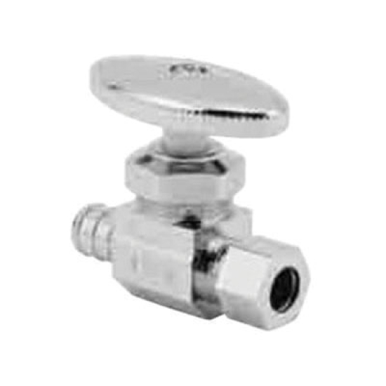 Multi-Turn Straight Stop, Nominal Size: 1/2 X 3/8 IN, Connection Type: PEX X Compression, Pressure Rating: 125 PSI, Temperature Rating: 160 DEG F, Brass Body Material, Loose Key Handle Operator Type, Finish/Color: Chrome Plated, Industry Standards: NSF/ANSI 61 Section 9-G, NSF Certified, UPC Listed, 2-1/8 IN Width, 2-1/8 IN Height, Lead Free: Yes