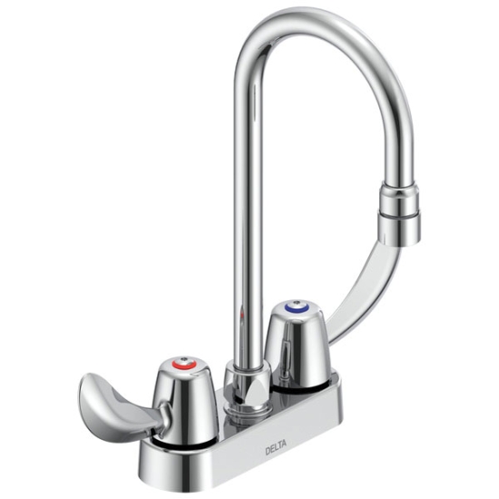 Delta 27C4842 Chrome Plated Cast Brass Gooseneck Spout Manual Lavatory Faucet, 1/2-14, NPSM