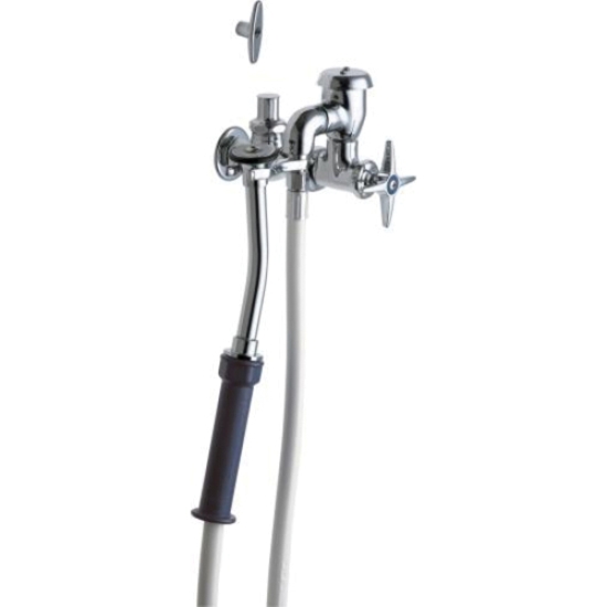Bed Pan Cleaner With Loose Key, Manual Operation, 1 Handles, Handle Type: Cross, 1/2 IN Inlet Size, Connection Type: FNPT, Finish/Color: Chrome Plated, Mounting: Wall, 2-1/4 IN Spout Reach, 3-1/2 IN Spout Total Height, ADA Compliant: No, Industry Standards: ASME A112.18.1/CSA B125.1 Certified, Temperature Rating: 40 - 140 DEG F, Additional Specifications: Pressure Rating: 20 - 125 PSI