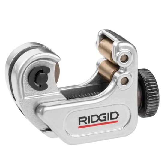 Ridgid® close quarter tubing cutters are specifically designed for use in restricted spaces on small diameter, hard and soft copper, aluminum, brass and plastic tubing. Strong, lightweight slide and wheel housing, and large knurled feed screw knob give easy control of cutting pressure for clean cuts.