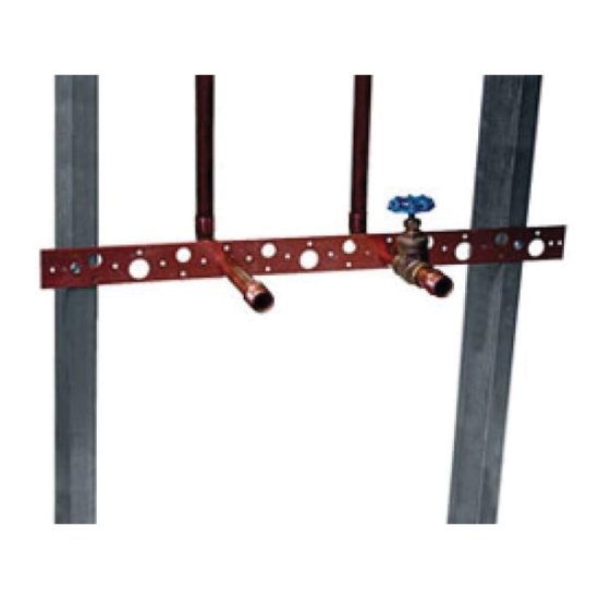 Flat Bracket, Pipe Size: 1/2 IN, 3/4 IN CTS, Length: 26 IN, Material: 16 GA Cold Rolled Steel, Load Capacity: 25 LB, Industry Standards: UPC/IPC/IAPMO Certified, Finish/Color: Copper-Bonded, Other Physical Dimension: 1-3/4 IN Width, 4 IN Hole Center, (6) 7/8 IN (6) 5/8 IN Hole Diameter