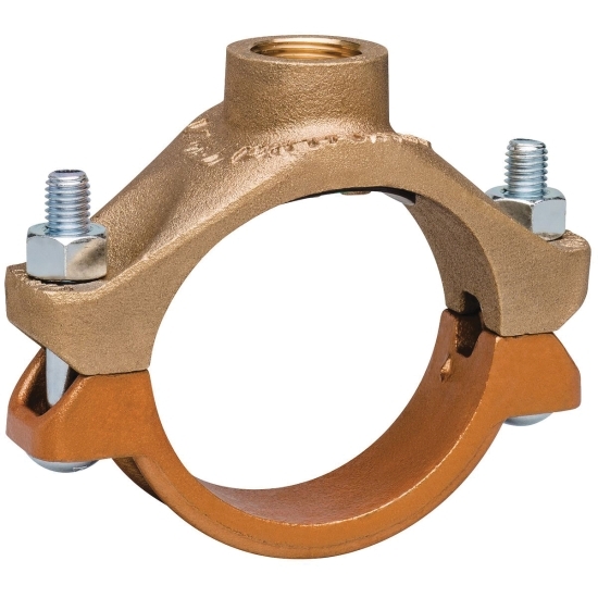 Victaulic Mechanical-T® Style 622 Copper Colored Alkyd Enamel Coated Cast Bronze Upper/Ductile Iron Lower Bolted Branch Outlet With Grade E Gasket, 2-1/2 X 3/4 IN, FNPT