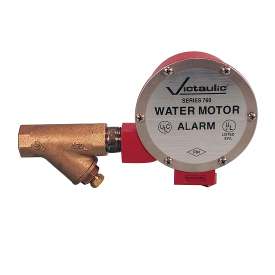Victaulic 760 Red Enamel Painted Aluminum And Stainless Steel Water Motor Alarm With Wye Strainer, 3/4 IN NPT
