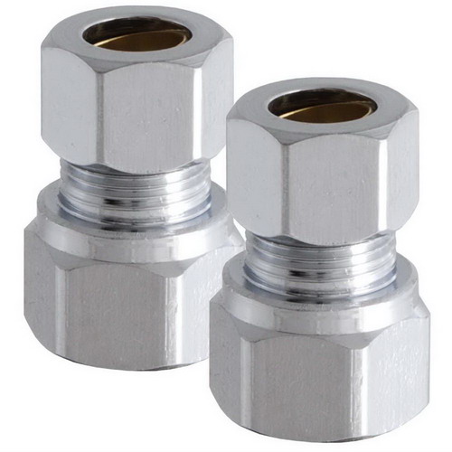 Straight Compression Adapter, Tube Size: 3/8 IN, Nominal Size: 3/8 IN, Connection Type: Compression X FNPT, Material: Brass, Finish/Color: Chrome Plated