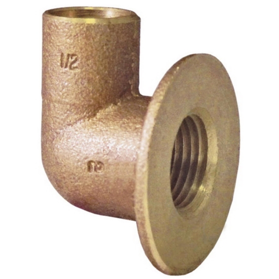 Industrial/Residential Solder Joint 90 DEG Flanged Sink Elbow, Series/Model: Model 4708, Tube Size: 1/2 IN, Nominal Size: 1/2 IN, Connection Type: Copper X FNPT, Material: Brass, Maximum Pressure: 720 PSI, Temperature Rating: -20 To 100 DEG F, Industry Standards: ASME/ANSI B16.18, NSF/ANSI Standard 61 Certified, TecTite: No, DWV: No, Cast: Yes, Wrot: No, Lead Free: No, O2 Cleaned: No
