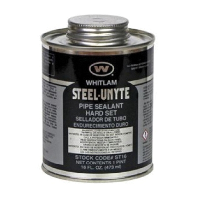 Steel-Unyte Hard Set Thread And Gasket Sealant, Series/Model: Series ST, Size: 16 OZ, Container Type: Brush Top Can, Dark Gray Color, Form: Semi Paste, Odor: Slight Alcohol, Dry Time: 5 MIN, Temperature Rating: -50 To 400 DEG F, Brushable: -50 DEG F, Ignition: 901 DEG F, Specific Gravity: 1.35 At Water, Flash Point: 58 DEG F (TTC), VOC: Less Than 350 G/L, Industry Standards: Exceeds US Federal Specification MIL-S-7916B