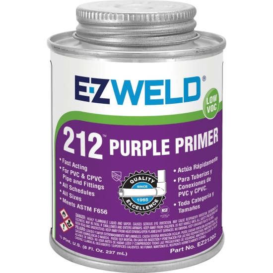 E-Z weld purple primer is a special blend of solvents formulated to soften and swell PVC and CPVC pipes and fittings. Primer penetrates the surface of the pipe and the fitting to be joined therefore; the use of primer will provide a stronger joint. It is highly recommended that primer should be used on the installation of larger than 3 IN diameter.