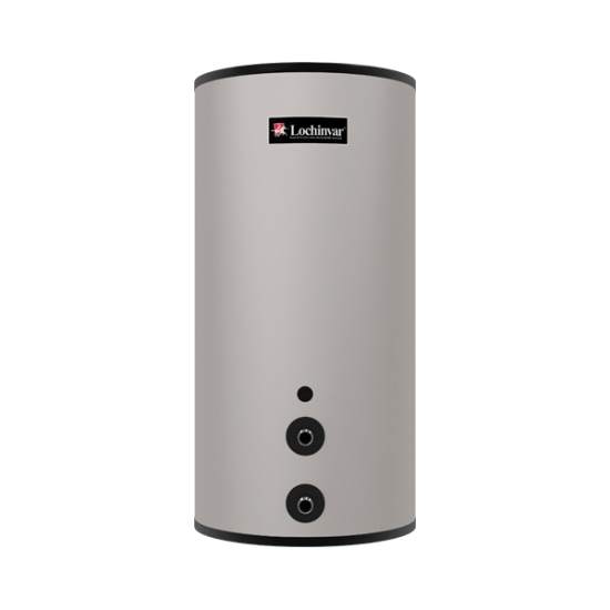 Lock-Temp® Vertical Round Jacketed And Insulated Storage Tank, Size: 119 GAL, Material: Glass-Lined Steel, Maximum Pressure: 150 PSI, Water Connection: 2 IN NPT, Relief Valve Connection: 1 IN NPT, Drain Connection: 3/4 IN, Length: 34 IN, 34 IN Width, 62-1/2 IN Height, Industry Standards: ASHRAE Certified