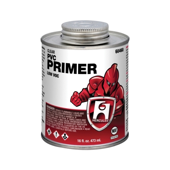 Hercules® clear primer is a professional-grade primer for use on all schedules and classes of PVC pipe and fittings. It removes contaminants such as surface dirt, grease and grime as well as softens the pipe surface to allow for a fast, secure solvent weld. It's clear finish will not stain most surfaces and applies easily with included in-lid dauber. Behold the power of Hercules®, products built to last and trusted by plumbers to withstand even the toughest conditions.