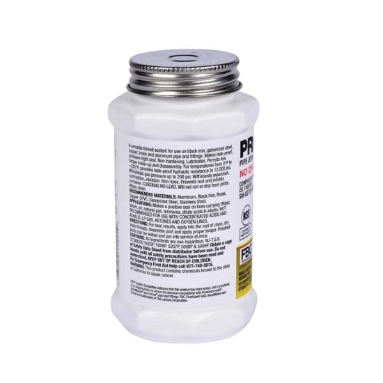 ProDope® Thread Sealant, Size: 8 OZ, Container Type: Can With Screw Cap Brush, Gray Color, Form: Liquid Paste, Odor: Fish Oil, Temperature Rating: 0 - 350 DEG F, Brushable: -15 DEG F, Flash Point: Greater Than 212 DEG F, VOC: 11 G/L, Industry Standards: NSF Standard 61 For Potable Water, Meets Military Specification TTS-1732 And MIL-A-12352A (CE)