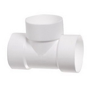 DWV Straight Tee, Series/Model: Series D, Nominal Size: 10 IN, Connection Type: Hub, SCH 40 Schedule, Outside Diameter: 11-17/32 IN, Length: 21-3/4 IN, Material: PVC, Material Standard: ASTM D2665, Method Of Manufacturer: Fabricated, Industry Standards: ASTM F1866, CSA B181.2, NSF, UPC Certified, Other Physical Dimension: 5-1/16 IN Hub Length