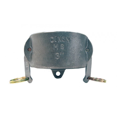 Type DC Dust Cap, Nominal Size: 2 IN, Material: Malleable Iron, Finish/Color: Unplated, Outside Diameter: 3 IN, Length: 3-1/64 IN, Other Physical Dimension: 7-13/16 IN Distance Across Open Cam Arms, 2-7/32 IN Coupler Length