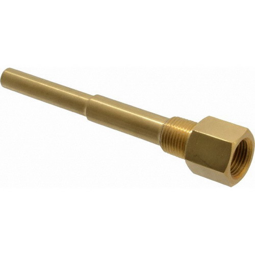 Lead-Free Thermowell, 1-1/4-18 UNEF Internal Thread, 3/4 IN NPT External Thread, 3-1/2 IN Stem Length, 0.62 IN Bore, 0.44 IN Shank Diameter, 2-1/2 IN Insertion Length, 1/2 IN Wrench Allowance, Temperature Rating: 150 DEG F, Pressure Rating: 300 PSI, Material: Brass, Industry Standards: CRN Approved