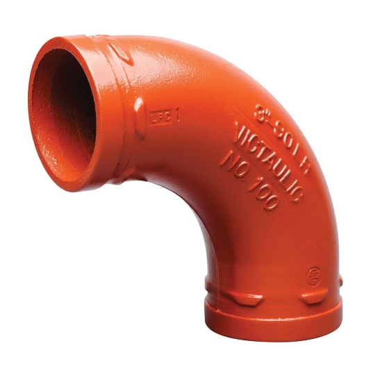 Long Radius 45 DEG Elbow, Series/Model: Model 110-3D, Nominal Size: 8 IN, Connection Type: Grooved End, Material: Wall Steel, Material Standard: ASTM A53 Grade B, Finish/Color: Orange Enamel Painted, Outside Diameter: 8-5/8 IN, Maximum Pressure: 800 PSI, Industry Standards: C/US UL Listed, FM, LPCB, CTP Approved, Other Physical Dimension: 18 IN Center To End, Domestic/Import: Import