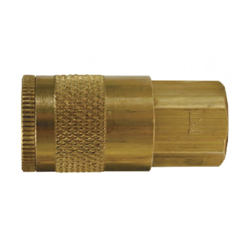 Semi-Auto Industrial Air Chief Quick Disconnect Coupler, Nominal Size: 1/4 IN, Thread Size: 1/4-18, Connection Type: FNPT, Material: Brass, Pressure Rating: 300 PSI, Temperature Rating: -40 To 250 DEG F, Outside Diameter: 0.93 IN, Length: 2.07 IN, Industry Standards: Military Specification MIL-C-4109F/A-A-59439, Other Physical Dimension: 3/4 IN Hex, Additional Specifications: Flow Rate: 37 CFM At 100 PSI