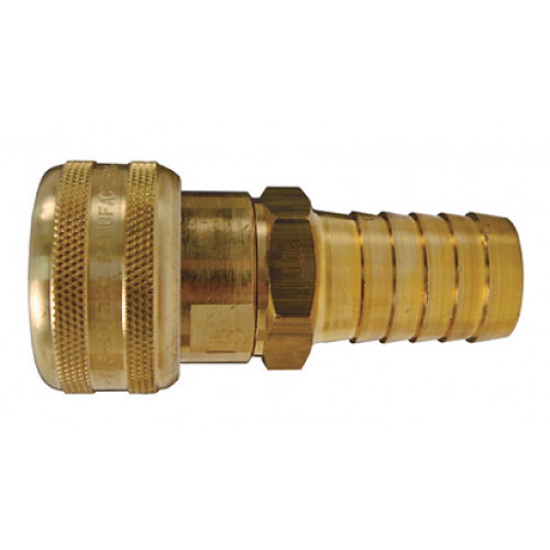 Semi-Auto Industrial Air Chief Quick Disconnect Coupler, Nominal Size: 1/4 IN, Thread Size: 1/4 IN, Connection Type: Hose Barb, Material: Brass, Pressure Rating: 300 PSI, Temperature Rating: -40 To 250 DEG F, Outside Diameter: 0.88 IN, Length: 2-1/2 IN, Industry Standards: Military Specification MIL-C-4109F/A-A-59439, Other Physical Dimension: 3/4 IN Hex, 1/8 IN Hex Shank, Additional Specifications: Flow Rate: 37 CFM At 100 PSI