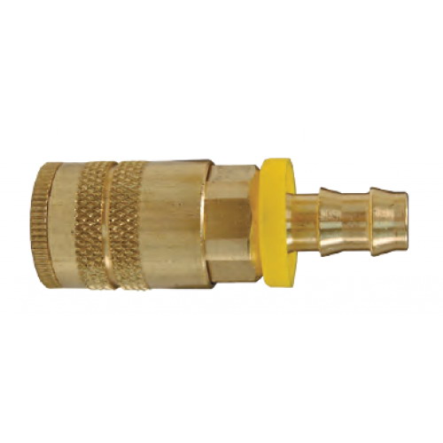 Semi-Auto Industrial Air Chief Quick Disconnect Coupler, Nominal Size: 1/4 IN, Thread Size: 1/4 IN, Connection Type: Push-On Hose Barb, Material: Brass, Pressure Rating: 300 PSI, Temperature Rating: -40 To 250 DEG F, Outside Diameter: 0.88 IN, Length: 2-3/8 IN, Industry Standards: Military Specification MIL-C-4109F/A-A-59439, Other Physical Dimension: 3/4 IN Hex, 1/4 IN Hose Shank Length, Additional Specifications: Flow Rate: 37 CFM At 100 PSI