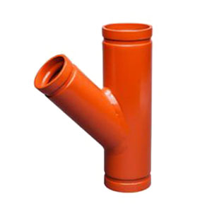 45 DEG Reducing Lateral, Series/Model: Model 30-R, Nominal Size: 4 X 4 X 2 IN, Connection Type: Grooved End, Material: Ductile Iron, Material Standard: ASTM A536 Grade 65-45-12, Finish/Color: Orange Enamel Painted, Maximum Pressure: 1000 PSI, Industry Standards: C/US UL Listed, FM, LPCB, CTP Approved, Other Physical Dimension: 10-1/2 IN Center To Large End, 3-3/4 IN Center To Small End, Domestic/Import: Import