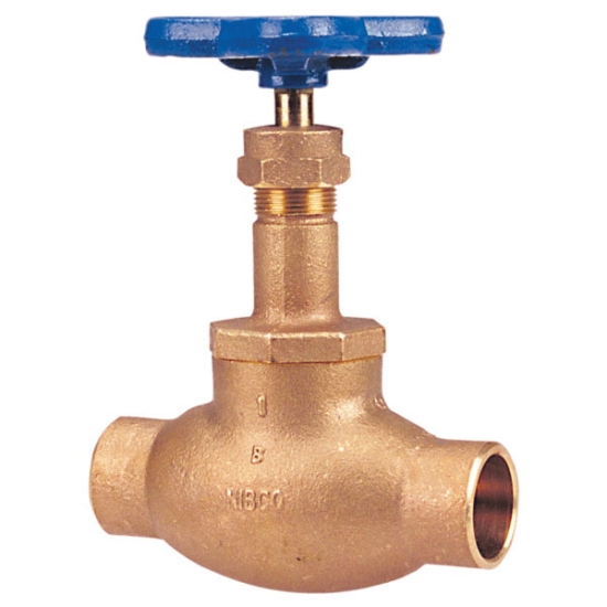 The Nibco® bronze globe valve features a screw-in bonnet with integral seat. The valve has a renewable PTFE seat disc. It is equipped with class 125 solder ends for ease of installation. The globe valve is used for throttling or regulating flow.