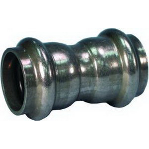 Vic-Press™ Standard Coupling With Grade H Seal, Series/Model: Style P597, Nominal Size: 1-1/2 IN, Connection Type: Press, SCH 10S Schedule, Material: 304 Stainless Steel, Material Standard: ASTM A312, Outside Diameter: 1.9 IN, Length: 3.48 IN, Maximum Pressure: 500 PSI, Industry Standards: NSF Certified, FM Approved, Other Physical Dimension: 0.72 IN Take Out, Domestic/Import: Import
