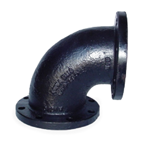 Class 125 Standard Black Cast Iron Flanged 90 DEG Elbow, 1-1/2 IN, 5 IN OD Flange