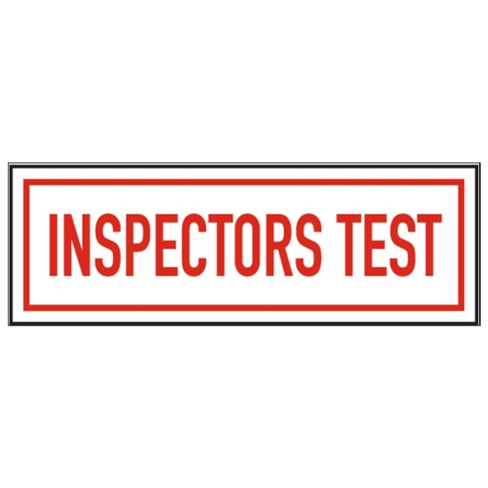 Identification Sign, Legend: INSPECTORS TEST, Material: 0.02 IN Aluminum With Removable Plastic Coating, Red Legend, White Background, Length: 6 IN, 2 IN Width, Industry Standards: Meets NFPA 13 Requirements
