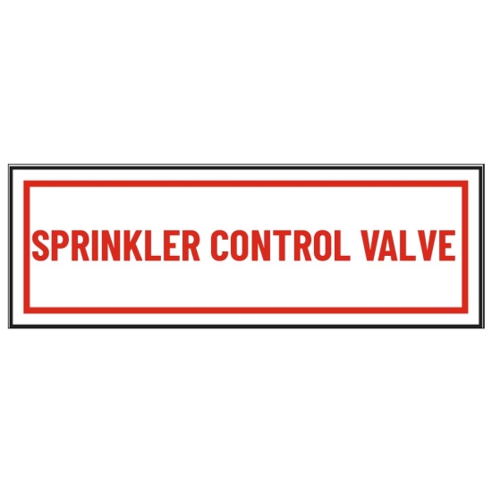 Identification Sign, Legend: SPRINKLER CONTROL VALVE, Material: 0.02 IN Aluminum With Removable Plastic Coating, Red Legend, White Background, Length: 6 IN, 2 IN Width, Industry Standards: Meets NFPA 13 Requirements