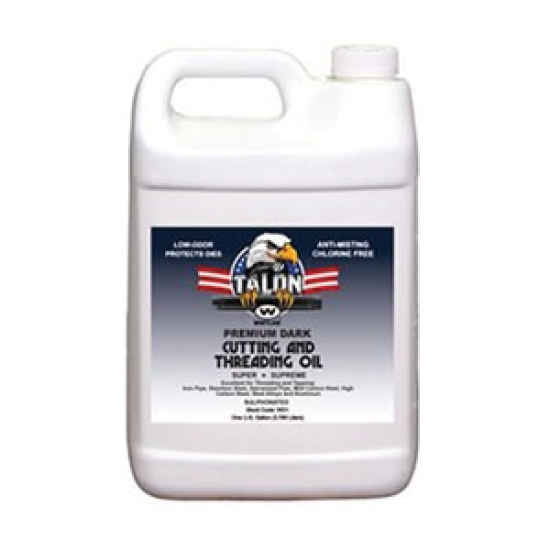 Talon Super Supreme Dark Thread Cutting Oil, Series/Model: Series WD, Size: 1 GAL, Container Type: Plastic Jug With Spout, Dark Pale Color, Form: Liquid, Odor: Acrid, Temperature Rating: Pour Point: 20 DEG F, Specific Gravity: 27.3 API, 0.8767 At 60 DEG F, Flash Point: 380 DEG F, Additional Specifications: Viscosity: 30.8 CST At 40 DEG C