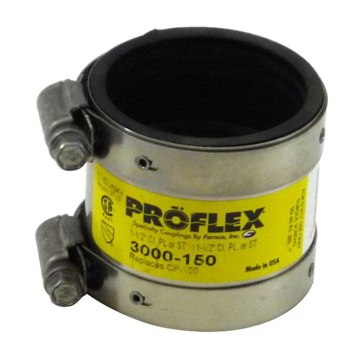 Band-Seal® Shielded Transition Coupling, Nominal Size: 1-1/2 IN, Connection Type: Cast Iron X Plastic/Steel, Material: Neoprene Rubber Sleeve, Stainless Steel Component, Material Standard: Sleeve: ASTM C564, Industry Standards: ASTM C1460, UPC Approved