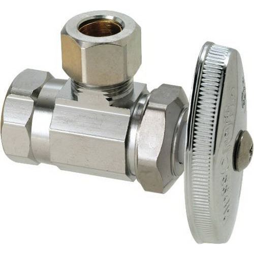 Multi-Turn Angle Stop, Nominal Size: 3/8 IN, Connection Type: FNPT X Compression, Pressure Rating: 125 PSI, Temperature Rating: 160 DEG F, Brass Body Material, Oval Knurled Handle Operator Type, Handle Material: Metal, Stem Material: POM/Brass, Packing Material: Brass, Nitrile/EPDM, Finish/Color: Chrome Plated, Industry Standards: NSF/ANSI 61 Section 9-G, NSF Certified, UPC Listed, 1-7/16 IN Width, 2-3/8 IN Height, Lead Free: Yes