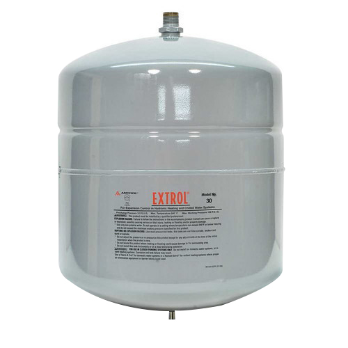 Extrol® Boiler System Expansion Tank, Series/Model: Series EX, Capacity: 6.7 GAL, Material: Steel, Finish/Color: Urethane Topcoat, Maximum Pressure: 100 PSIG, Connection Size: 1/2 IN MNPT, Length: 11 IN, 11 IN Width, 23 IN Height, Temperature Rating: 240 DEG F, Additional Specifications: Maximum Acceptance Volume: 2-1/2 GAL, Factory Pre-charge: 12 PSIG