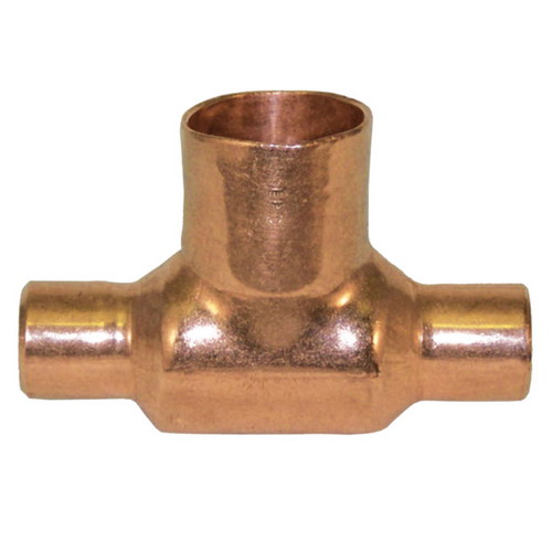 Bullhead Industrial/Residential Solder Joint Reducing Tee, Series/Model: Model 111BH, Tube Size: 1/2 X 1/2 X 3/4 IN, Connection Type: Copper, Material: Copper, Outside Diameter: 5/8 X 5/8 X 7/8 IN, Maximum Pressure: 720 PSI, Temperature Rating: -20 To 100 DEG F, Industry Standards: MSS-SP-104, ASME/ANSI B16.22, NSF/ANSI Standard 61 Certified, TecTite: No, DWV: No, Cast: No, Wrot: Yes, Lead Free: No, O2 Cleaned: No