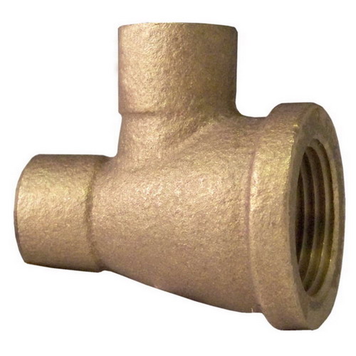 Cast Brass Solder Joint Reducing Tee, 1/2 X 3/4 X 1/2 IN, Copper X FNPT X Copper