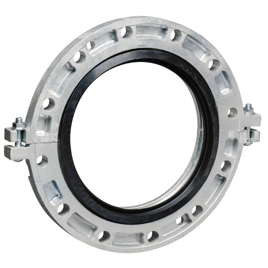 AGS® Vic-Flange® Flange Adapter With Grade E Gasket, Series/Model: Style W741, Nominal Size: 16 IN, 23-1/2 IN Flange Outside Diameter, Nominal Bore Size: 16 IN, 2.38 IN Flange Thickness, 21-1/4 IN Bolt Circle Diameter, Number Of Bolts: Assembly: 16, Draw: 2, Bolt Hole Diameter: Assembly: 1 IN, Draw: 5/8 IN, Material: Ductile Iron, Material Standard: ASTM A536 Grade 65-45-12, Finish/Color: Hot-Dipped Galvanized, Maximum Pressure: 300 PSI Standard And Light Wall, Other Physical Dimension: 4-1/2 IN Assembly And 3-1/2 IN Draw Bolt Length, 18 - 16 IN Sealing Surface, Domestic/Import: Import, Additional Specifications: End Load: 60315 LB Standard And Light Wall