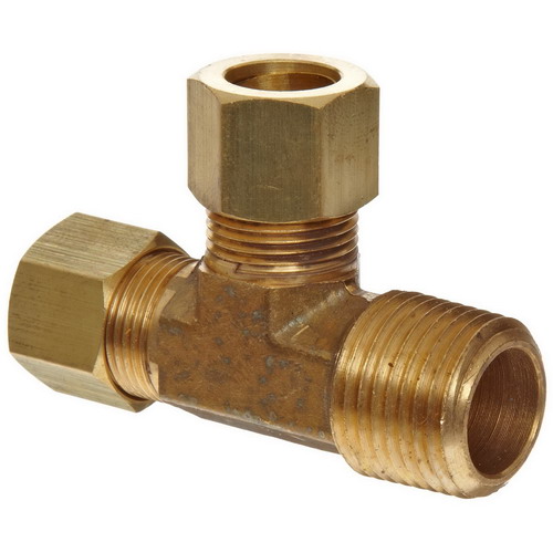 Compression Street Tee, Tube Size: 1/8 X 1/8 IN, Nominal Size: 1/8 IN, Connection Type: Compression X MNPT X Compression, Material: Brass