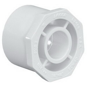 Bushing, Nominal Size: 1-1/4 X 1 IN, Connection Type: Spigot X Slip, SCH 40 Schedule, Material: PVC, Material Standard: ASTM D1784, ASTM D2466 Type 1 Grade I Cell Class 12454, Finish/Color: White, Length: 1-1/2 IN, Temperature Rating: 140 DEG F, Industry Standards: NSF/ANSI Standard 14 And 61 Annex G, Other Physical Dimension: 1-3/16 IN Spigot Length