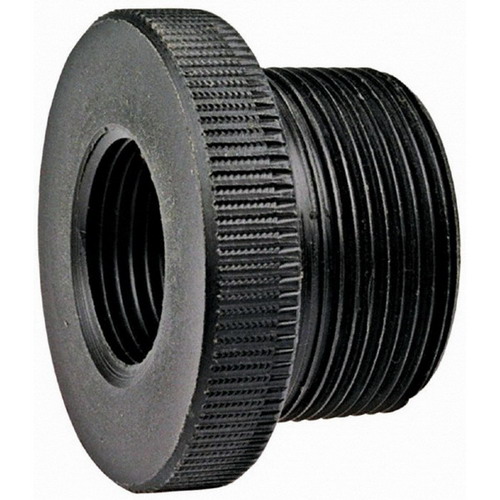 Chemtrol® Flush Reducer Bushing, Series/Model: Model 6118-3-4, Nominal Size: 3/4 X 1/2 IN, Connection Type: MNPT X FNPT, SCH 80 Schedule, Material: Polypropylene, Material Standard: ASTM D4101, Finish/Color: Black, Method Of Manufacturer: Molded, Length: 1.27 IN, Temperature Rating: 180 DEG F, Industry Standards: ANSI B1.20.1, Other Physical Dimension: 0.43 IN Unthreaded Length
