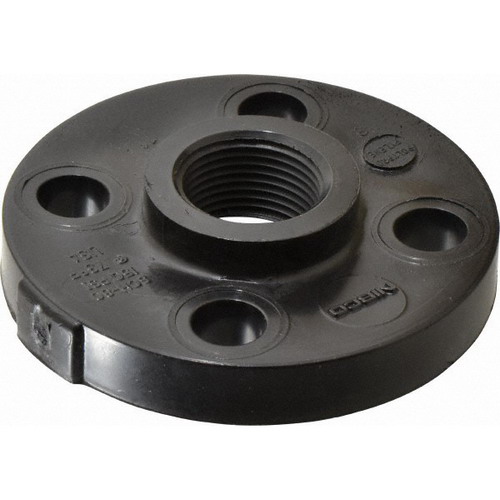 Chemtrol® 1-Piece Solid Design Heavy Duty Threaded Flange, Series/Model: Model 6151-H-3, Class 150 Pressure Class, Nominal Size: 1 IN, Connection Type: FNPT, SCH 80 Schedule, Thickness: 1.07 IN, 0.67 IN Length Through Hub, Material: Polypropylene, Material Standard: ASTM D4101, Finish/Color: Black, Method Of Manufacturer: Molded, Temperature Rating: 180 DEG F, Industry Standards: ANSI B16.5