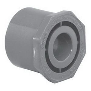Flush Bushing, Nominal Size: 2 X 1 IN, Connection Type: Spigot X Slip, SCH 80 Schedule, Material: PVC, Material Standard: ASTM D1784, ASTM D2467 Type 1 Grade I Cell Class 12454, Finish/Color: Gray, Length: 1-13/16 IN, Temperature Rating: 140 DEG F, Industry Standards: NSF/ANSI Standard 14 And 61 Annex G, Other Physical Dimension: 2-1/2 IN Hex Outer Diameter