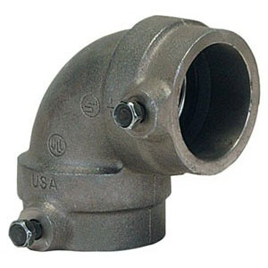 Gruvlok® Sock-It® 90 DEG Elbow With Grade E Gasket, Series/Model: Model 7100, Nominal Size: 1-1/2 IN, Connection Type: Socket, Material: Cast Iron, Material Standard: ASTM A126 Class A, Finish/Color: Black, Outside Diameter: 1.9 IN, Maximum Pressure: UL/FM: 300 PSI, Industry Standards: C/US UL Listed, FM Approved, Other Physical Dimension: 2-5/8 IN Center To End, 1-1/8 IN Take Out