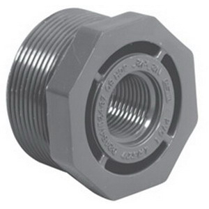 Flush Bushing, Nominal Size: 2 X 1-1/4 IN, Connection Type: MNPT X FNPT, SCH 80 Schedule, Material: PVC, Material Standard: ASTM D1784, ASTM D2467, ASTM D2464 Type 1 Grade I Cell Class 12454, Finish/Color: Gray, Length: 1-7/16 IN, Temperature Rating: 140 DEG F, Industry Standards: NSF/ANSI Standard 14 And 61 Annex G, Other Physical Dimension: 1-1/16 IN External Thread Length