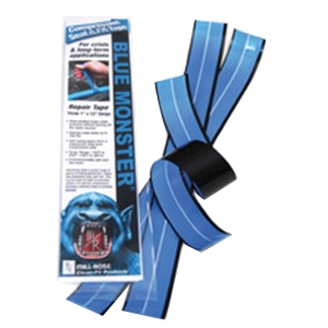 Blue Monster compression seal tape stops problem leaks while under pressure - without turning off the water source, developed for professional plumbing contractors, Blue Monster compression seal tape is ideal for crisis and long-term applications. Blue Monster compression seal tape features self-fusing layers that form a waterproof compression seal. Seal leaks up to 150 PSI on any type of rigid piping, from galvanized and cast iron to copper and all types of plastics and rubber. Blue Monster compression seal tape contains no adhesive. This tape seals by compression, so pulling the tape as tight as possible forms a chemical reaction that fuses the layers of tape into a mass of silicone. Once fused, the silicone mass forms a heavy-duty bond on the leak or connection that serves as an emergency or long-term repair. Blue Monster compression seal tapes are offered in 1 IN and 2 IN widths. Use the "big" 2 IN width tape for larger applications as it requires fewer wraps for a leak-proof seal. No waste and no re-taping make sealing joints a breeze.