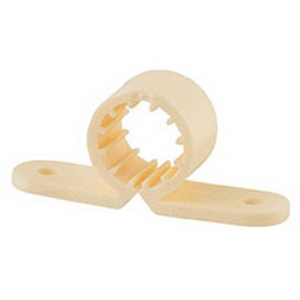 EZGlide⢠style Tube Clamp, Series/Model: Series 559, Nominal Size: 3/4 IN CTS, Maximum Load: 25 LB, 2 Mounting Holes, Material: High Impact Polypropylene, Industry Standards: cUPC Listed, Finish/Color: Ivory, Length: 2.617 IN, 0.675 IN Width, Other Physical Dimension: 1.275 IN Height, 2.029 IN Mounting Hole Center-Lines, 0.12 IN Mounting Tab Thickness, Additional Specifications: Temperature Rating: 140 DEG F Continuous